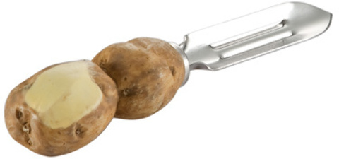 Stainless steel blade with polyresin decorated potato handle. Sharp blade makes peeling easy. Comfortable handle.