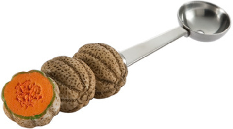 Assorted watermelon, cantaloupe, and honeydew handles. Made of stainless steel with a polyresin handle.